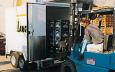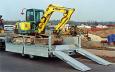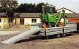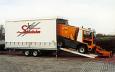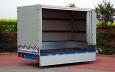 Niederflur ( TYP TL) LKW-Hochlader mit niedrigem Schwerpunkt und mit hinten hochstehenden Aluminium-Rampen für Geräte bis zu 3,2m Höhe. |