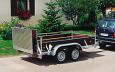 Transporter Hochlader Aluminium (TYP AH) Mit ihm kommt man überall durch. Enge Gassen, parkende Autos, alles kein Problem. Der Anhänger ist kaum breiter als das Zugfahr-zeug, aber mit 4,50 m langer Ladefläche ein ganz großer! |