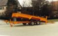 mit Rampen und kippbar ( TYP LT) LKW-Tieflader mit Rampen hinten hochstehend mit flacher Auffahrt durch niedrige Ladehöhe. Für Geräte mit wenig Bodenfreiheit, kann auch eine kippbare Version geliefert werden. |