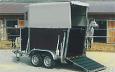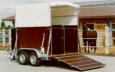 Zweipferdeanhänger mit PVC-Plane (TYP PV) Zweipferdeanhänger aus Multiplex mit formstabilem, zerlegbarem Dachgestell und einer Plane in weiß mit zwei Sichtfenstern. |